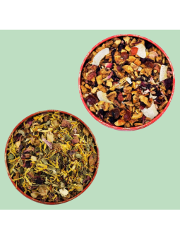 Savourez une délicieuse tasse de thé vert parfumé à la noix de coco, relevé d'une touche de curcuma. Laissez-vous transporter vers des contrées lointaines, où les saveurs exotiques se mêlent harmonieusement. Ajoutez à cela quelques morceaux d'ananas, apportant une note sucrée et acidulée à votre breuvage. Que vous soyez un amateur de thé ou simplement en quête d'une pause gourmande, cette combinaison de saveurs vous transportera vers un voyage gustatif unique.