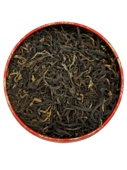 Élaboré à partir de variétés de Camellia sinensis à grandes feuilles, ce thé rouge, totalement oxydé, ne ressemble pas tout à fait à un autre Grand Yunnan. La transformation de ce thé associe de manière très artisanale les techniques du thé blanc et du thé rouge : les feuilles sont mises à flétrir au soleil et régulièrement roulées, jusqu’à dessiccation totale.