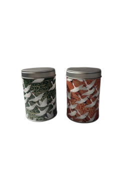 2 boîtes en métal recouvertes de papier japonais, double couvercle contenant :