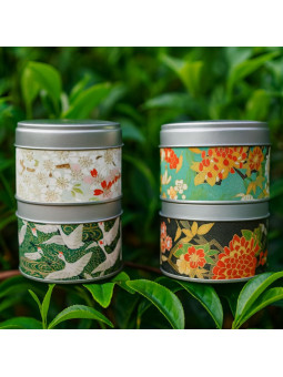 4 boîtes en métal recouvertes de papier japonais, double couvercle contenant :