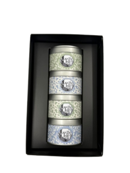 Découvrez quatre thés verts dans un élégant coffret noir.